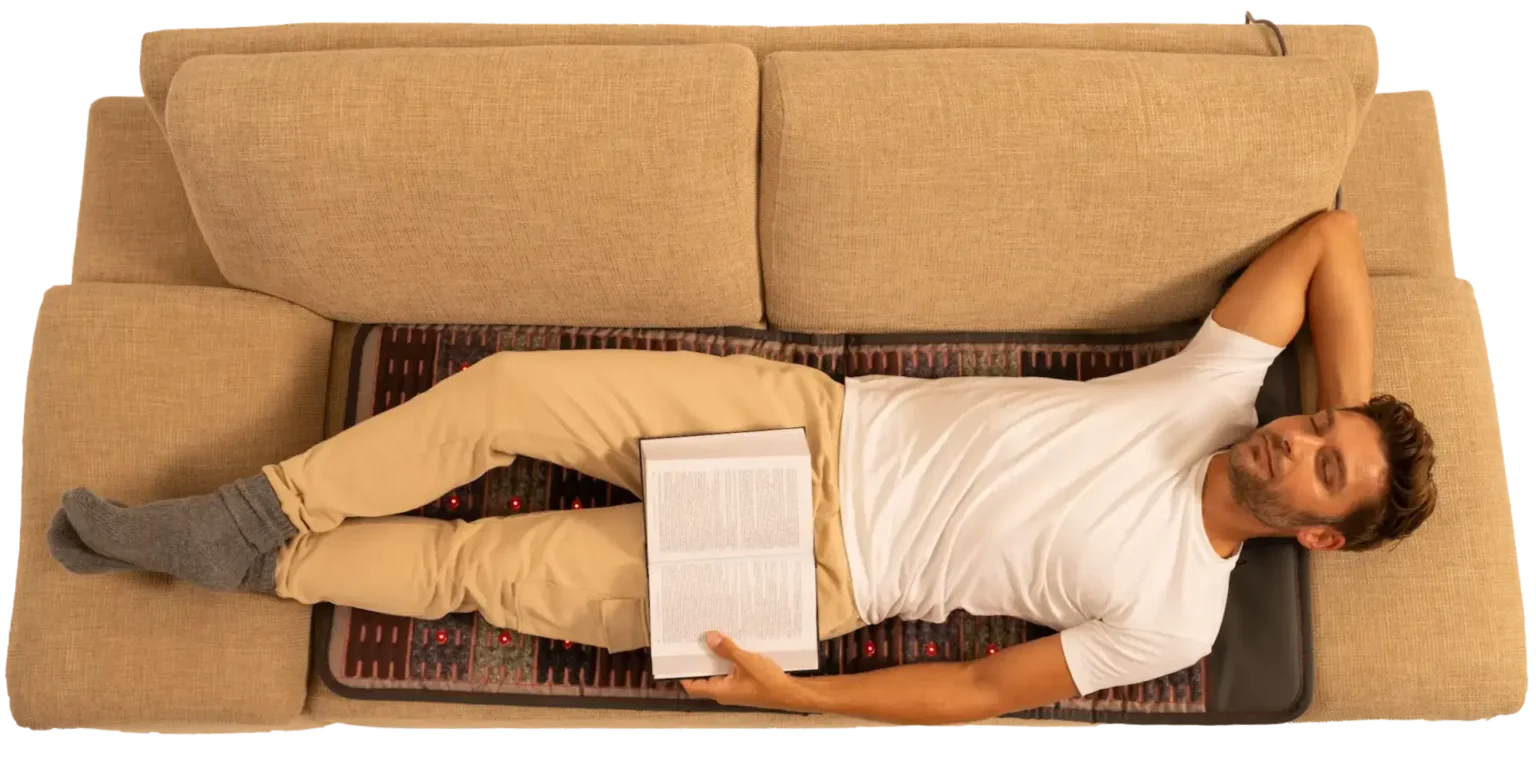 Moderne Frequenzmatte mit Magnetfeld, Infrarot-Tiefenwärme und Schumann-Resonanz für mehr Balance und Entspannung.